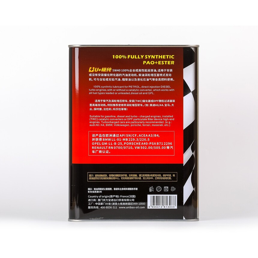 5W40 4L 100%先进全合成油适用于 柴汽及涡轮增压轿车,安装(TWC)催化器或 DPF 微粒过滤器装置高端发动机;特别推荐使用在带涡轮增压轿车奥迪 A6/A4、宝马、大众 (TDI、TSI、TFSI、FSI)、保时捷、法拉利、玛莎拉蒂等 产品说明 采用优质 PAO 基础油调配而成 100% 全合成机油;低硫酸灰分,低磷低硫 (中 SAPS),能有效降低 PM2.5 尾气排放值;建议换油周期 1万公里;该产品获MB229.51、BMW LL-04、VW502.00/505.00/505.01 (1999)RENAULT RN 0700/0710、PORSCHE、OPEL GM-LL-B-025 等国外名车厂商认证 ![]()